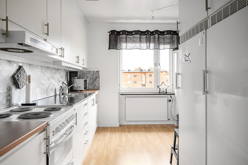 HushållselDriftkostnad: 4 800 kr kr/år Energiklass: F Energiprestanda: 158 kWh/m² år Bostadsrättens nettoskuldsättning: 4 818 kr Andelstal ägande: 0.6519 % Andelstal avgift: 0.6519 % Pantsättningsavgift: 588 kr Överlåtelseavgift: 1 470 kr Överlåtelseavgift betalas av säljaren TV/Internet: Fiber via Tidanet (öppen), eget abbonnemang Förråd: Källarförråd, matkällare Balkong/uteplats: Balkong Säljarens önskemål om tillträde: enl. överenskommelse Interiör Antal rum: 2 Boarea: 54 m² Byggnad Byggnadstyp: 4-plans hus Byggår: 1959 Fönster: 2-glas +1 Uppvärmningssystem: Vattenburen värme via fjärrvärme Ventilation: Mekanisk (endast frånluft)