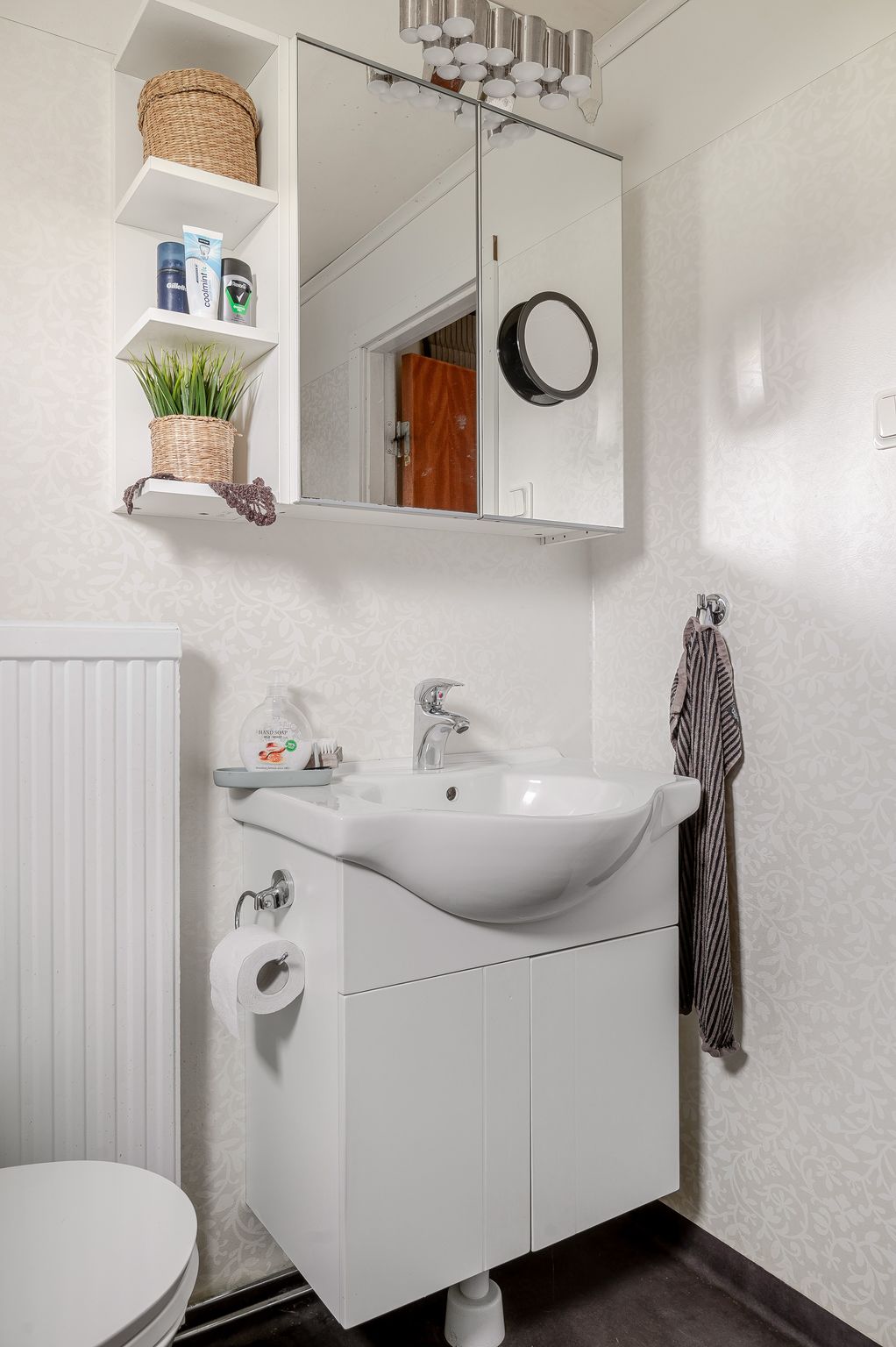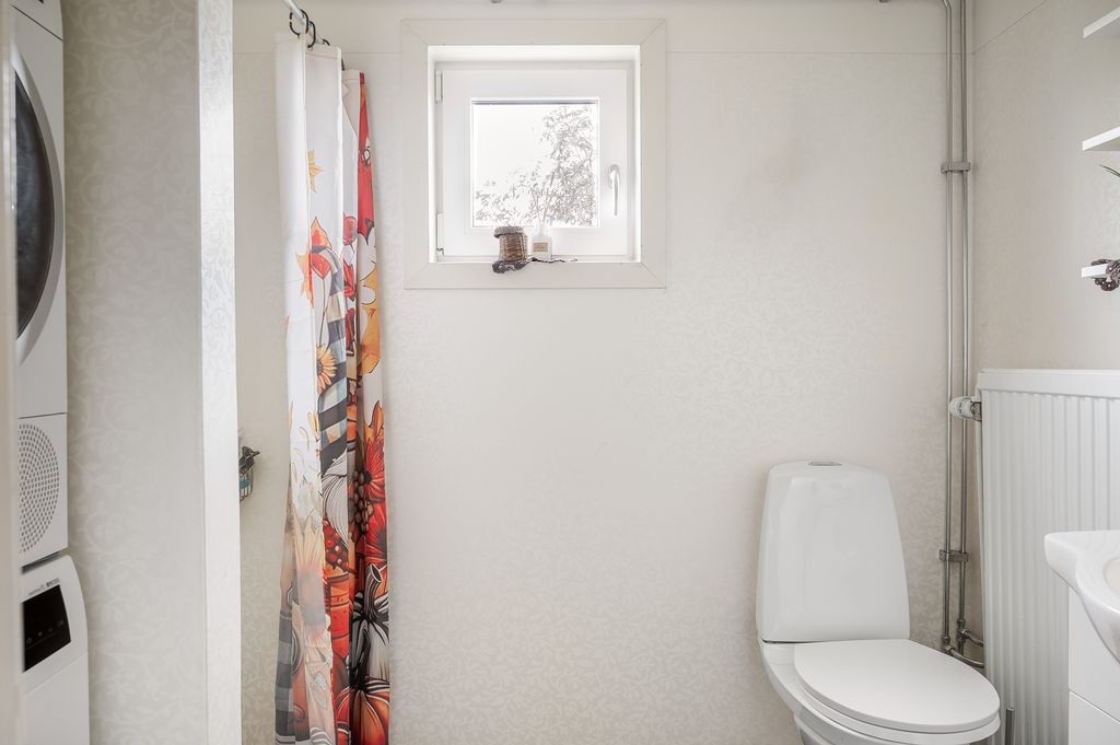 Våtrumsmatta på golv/vägg, tvättmaskin 2025, torktumlare ca 3-4 år, duschkabin, wc-stol, tvättställKök
