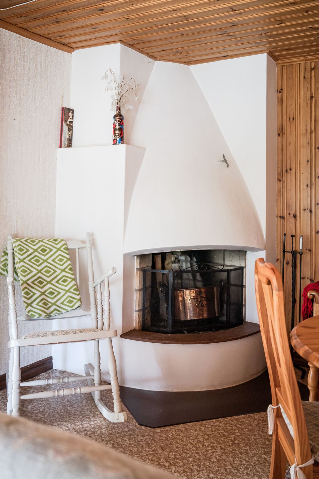 Trägolv och öppen spis - en härlig plats för umgänge året runt.Förråd