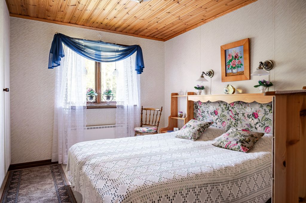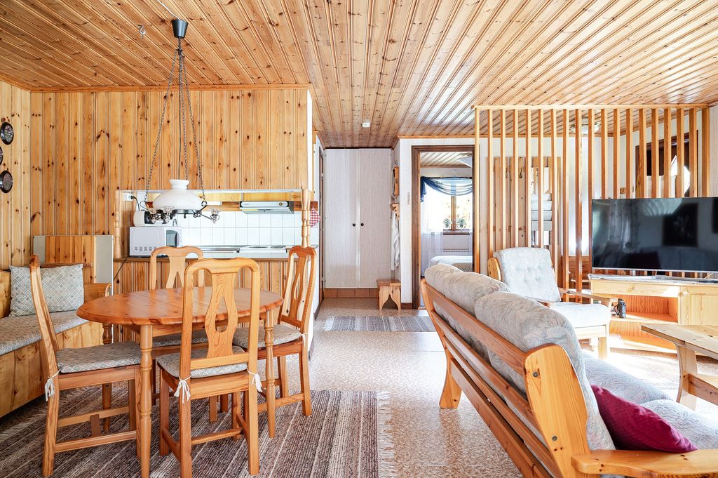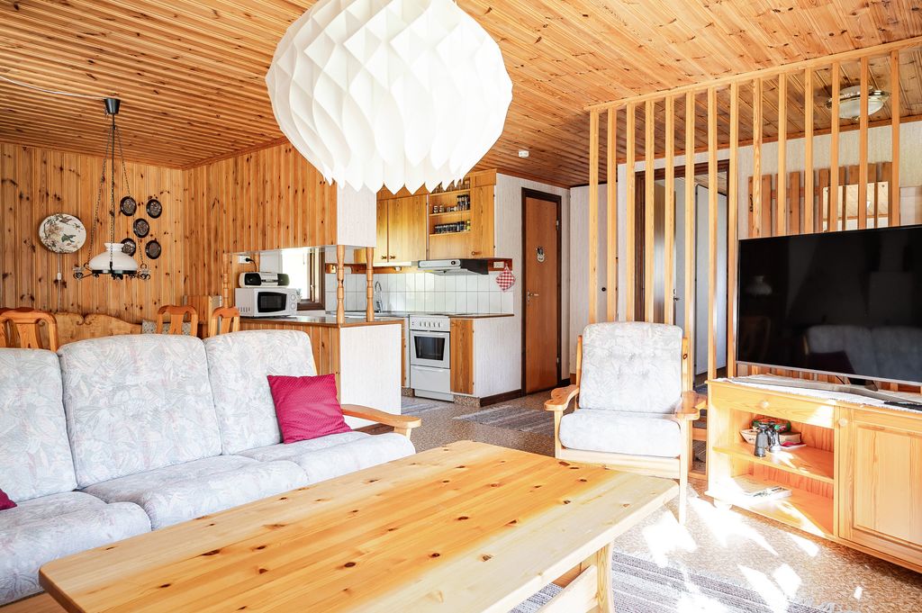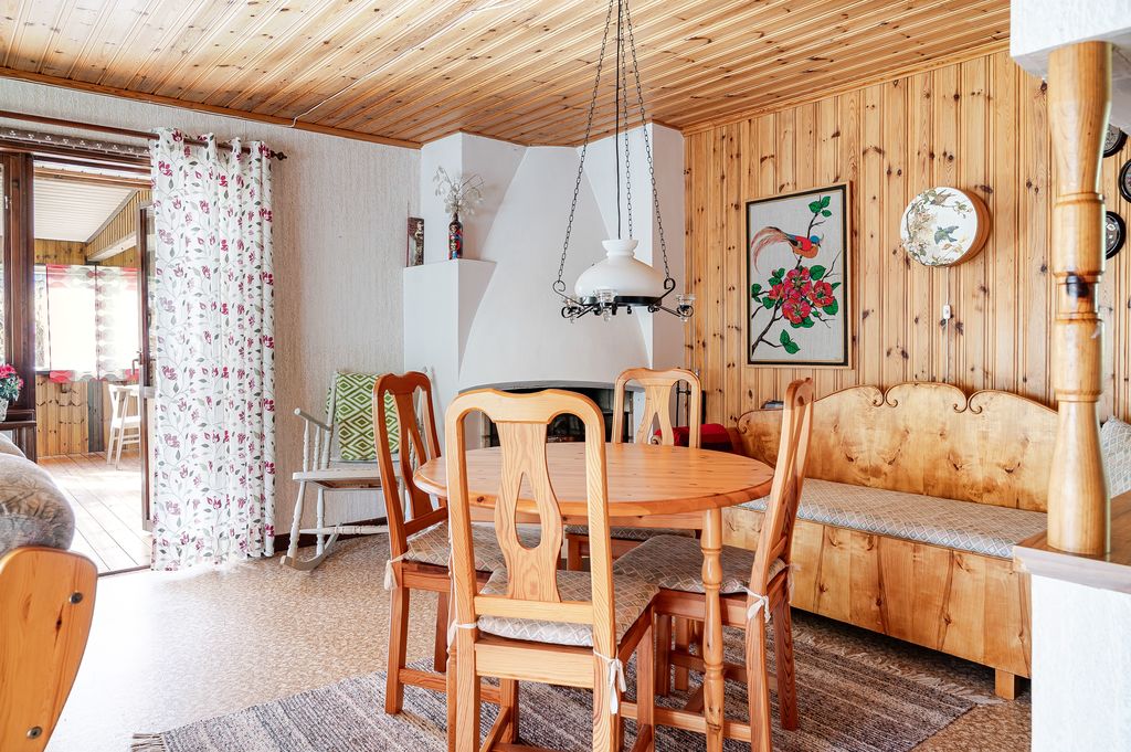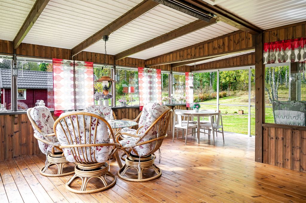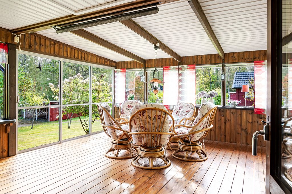 Huset erbjuder ett mysigt sovrum, ett badrum samt kök och allrum i öppen planlösning som är husets hjärta. Här finns en charmig öppen spis som bjuder in till mysiga kvällar. Från rummet når du den stora inglasade altanen som är en fantastisk plats för både måltider och avkoppling i alla väder med sällskapet.