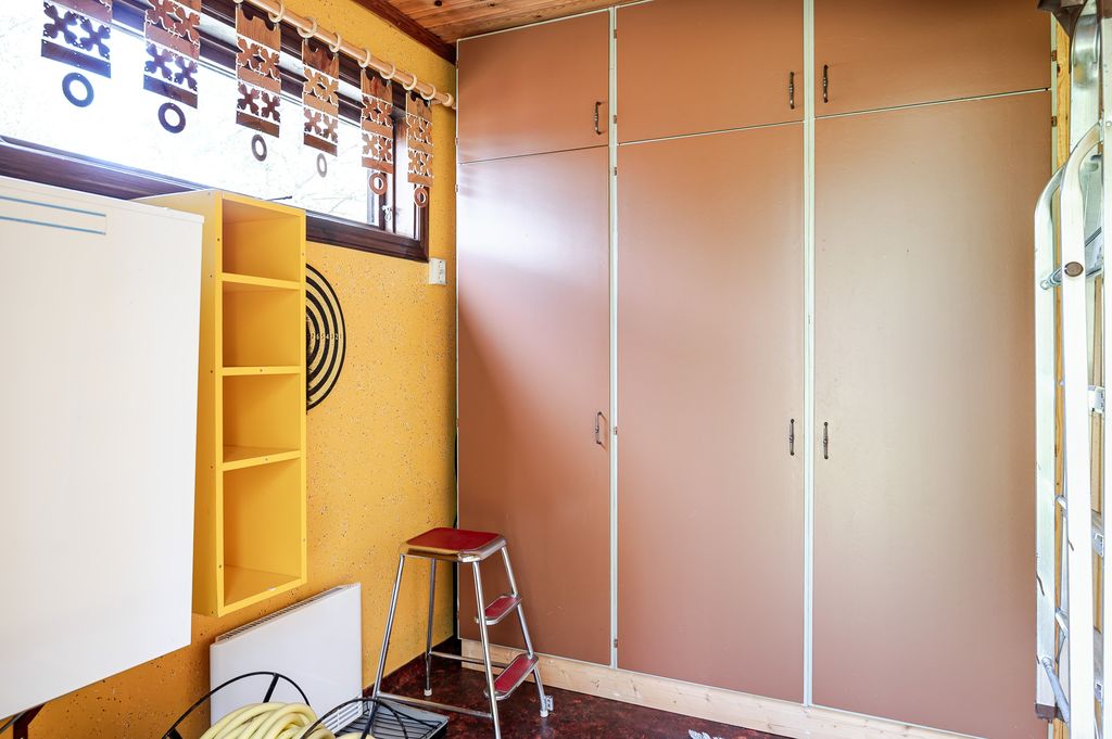 Till huset hör även ett praktiskt förråd med varmvattenberedare, tre garderober, fiberanslutning och vattenfilter, perfekt för ordning och reda.