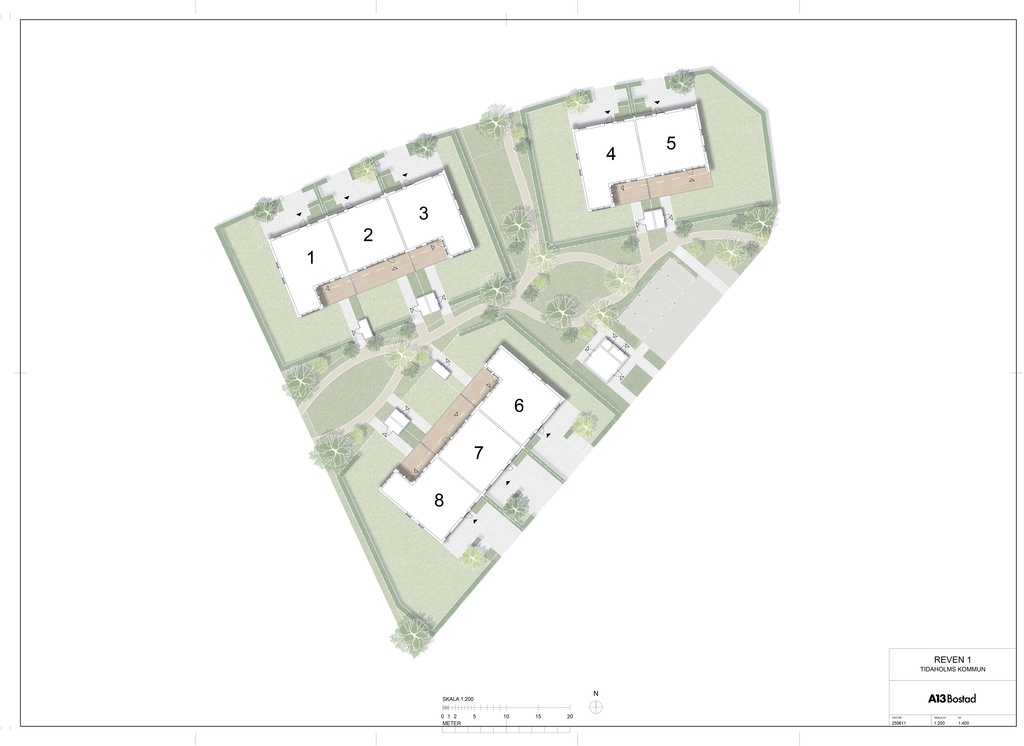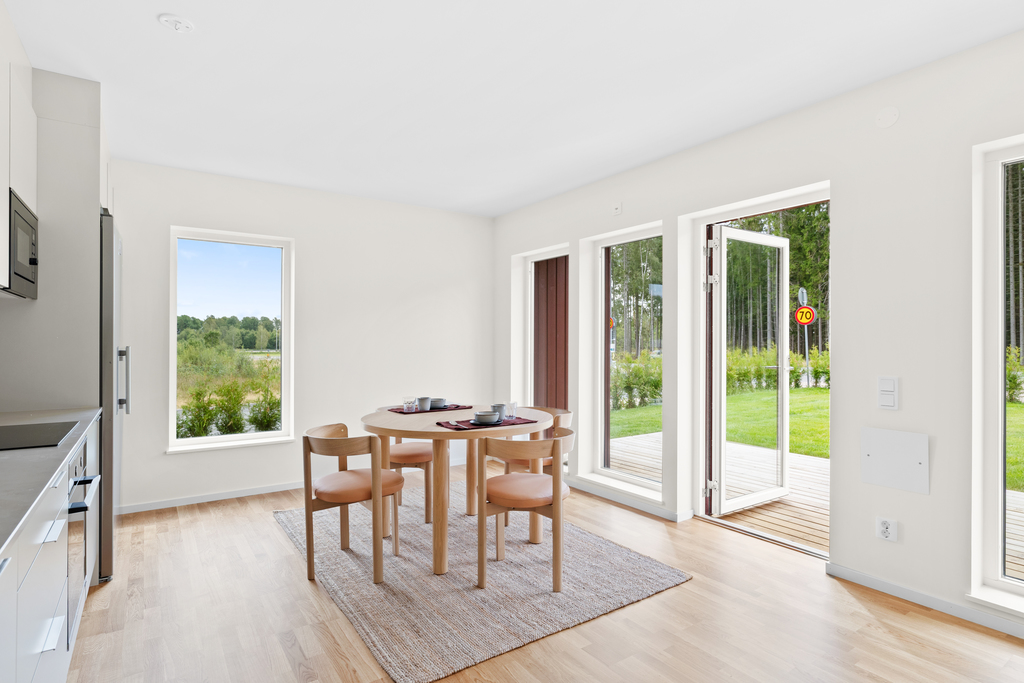 Välkommen till ett modernt nybyggnadsprojekt i det omtyckta Rosenbergsområdet i Tidaholm. Här uppförs åtta nyckelfärdiga radhus med äganderätt, perfekta för dig som söker ett bekvämt, lättskött och modernt boende i markplan. Bostäderna erbjuds i två storlekar - tre rum och kök om 86 kvm samt tre till fyra rum och kök om 98 kvm - och samtliga präglas av en öppen och ljus planlösning med generösa fönsterpartier som ger ett fantastiskt ljusinsläpp. Här möts modern design och genomtänkta materialval i ett hem som passar lika bra för den lilla familjen som för dig som vill bo bekvämt utan trappor. Varje bostad har egen gräsyta och tralldäck, vattenburen golvvärme i hela huset, parkettgolv samt ett smakfullt kök i modern färgsättning. Vidare finns ett helkaklat badrum med dusch och separat tvättavdelning samt en helkaklad toalett. Till varje bostad hör även förråd, en egen parkeringsplats vid entrén eller plats i gemensam carport. Detta markplansboende erbjuder en lättillgänglig och bekväm vardag med alla fördelar som ett nybyggt hem innebär - låg energiförbrukning, minimalt underhåll och moderna lösningar - i ett lugnt och trivsamt område.