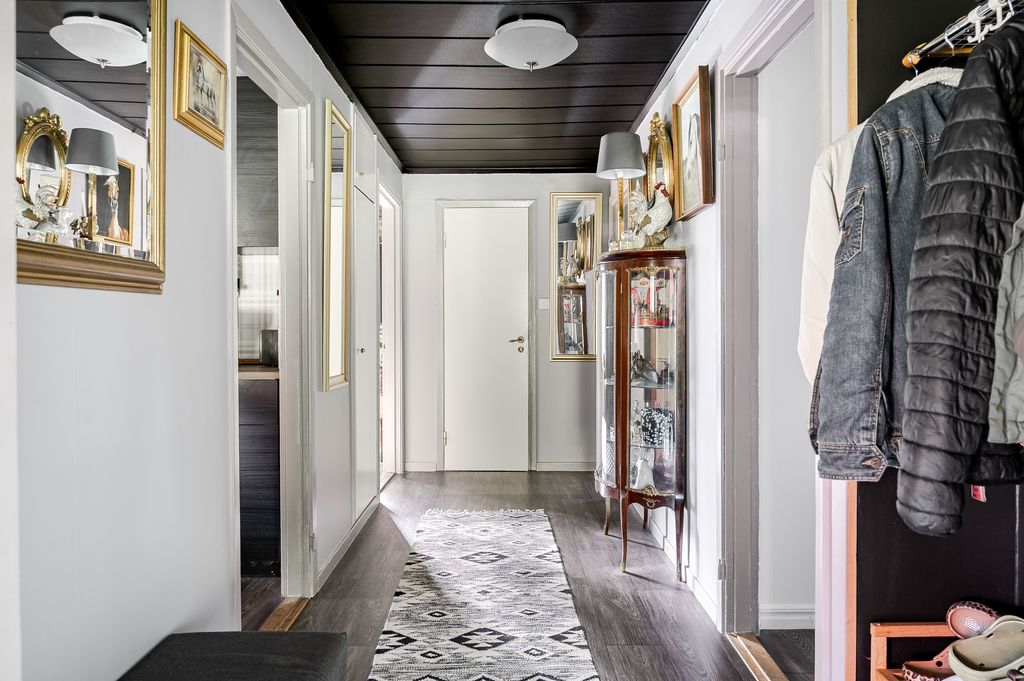 Upphängning för ytterkläder och skor till höger.Sovrum/Kontor