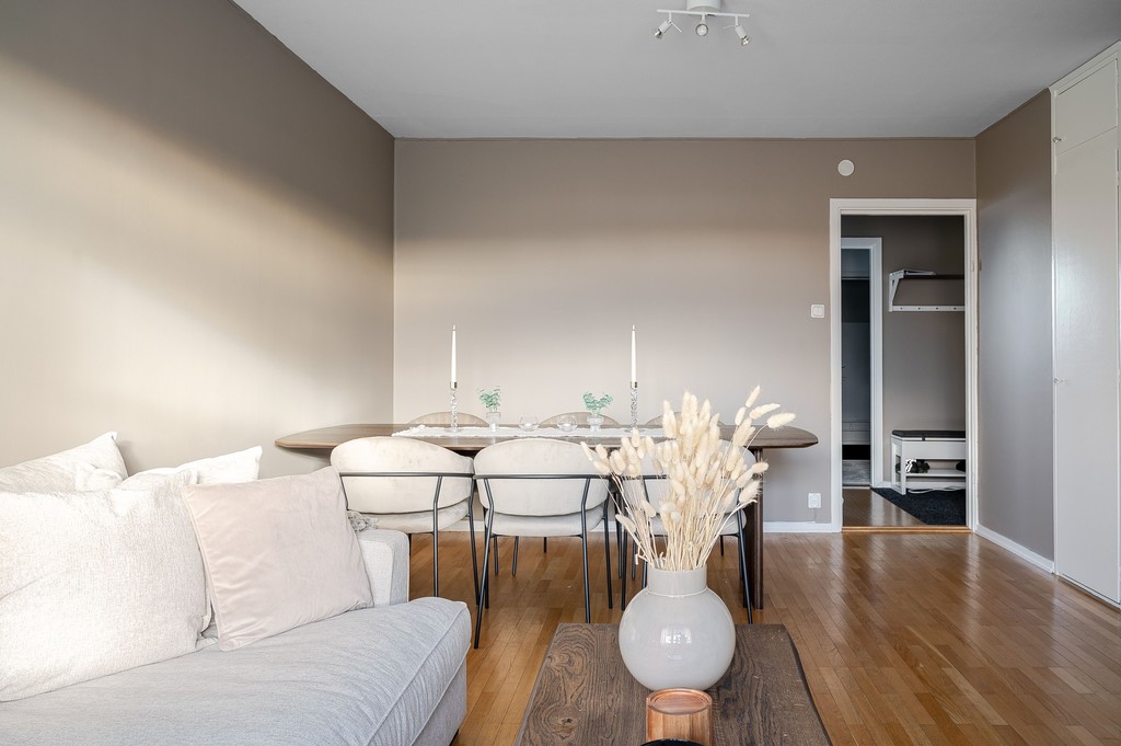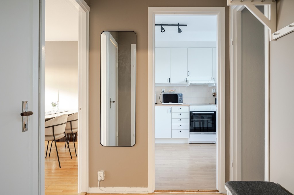 Välkommen till denna charmiga och välplanerade bostad om 45 kvm - ett perfekt hem för dig som söker ett praktiskt och trivsamt boende. Hallen öppnar upp till en rymlig förvaring, där du har gott om plats för kläder och andra nödvändigheter. Lägenheten erbjuder kök som är ljust och generöst, badrum, samt ett stort och rymligt allrum med sovalkov och utgång till den nyrenoverade balkongen.