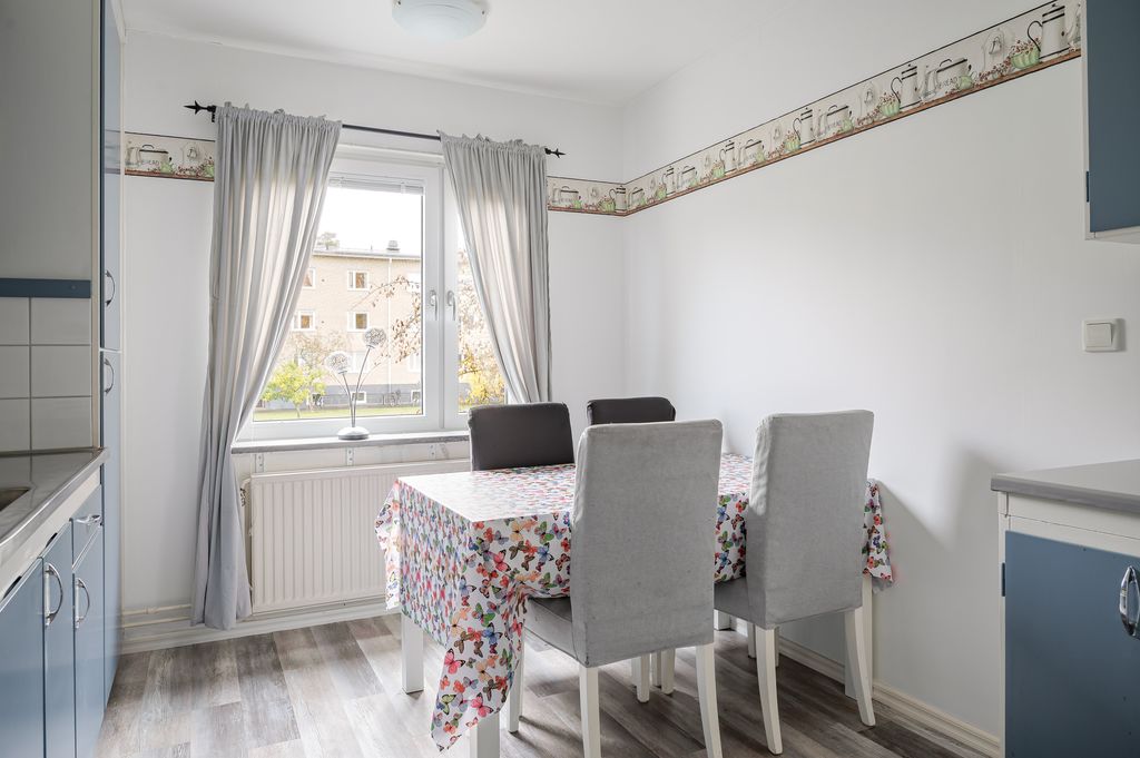 hushållselBostadsrättens nettoskuldsättning: 118 741 kr Andelstal ägande: 0.4774 % Andelstal avgift: 0.47743 % Överlåtelseavgift: 1 470 kr Överlåtelseavgift betalas av köparen TV/Internet: fiber via telia Förråd: Källarförråd Balkong/uteplats: Balkong Säljarens önskemål om tillträde: enl. överenskommelse Interiör Antal rum: 2 Boarea: 59.5 m² Byggnad Byggnadstyp: 3-plans hyreshus Byggår: 1966-1968 Kommentar: stambyte 2014-2015 Fönster: 3-glas Uppvärmningssystem: Fjärrvärme Ventilation: Självdrag