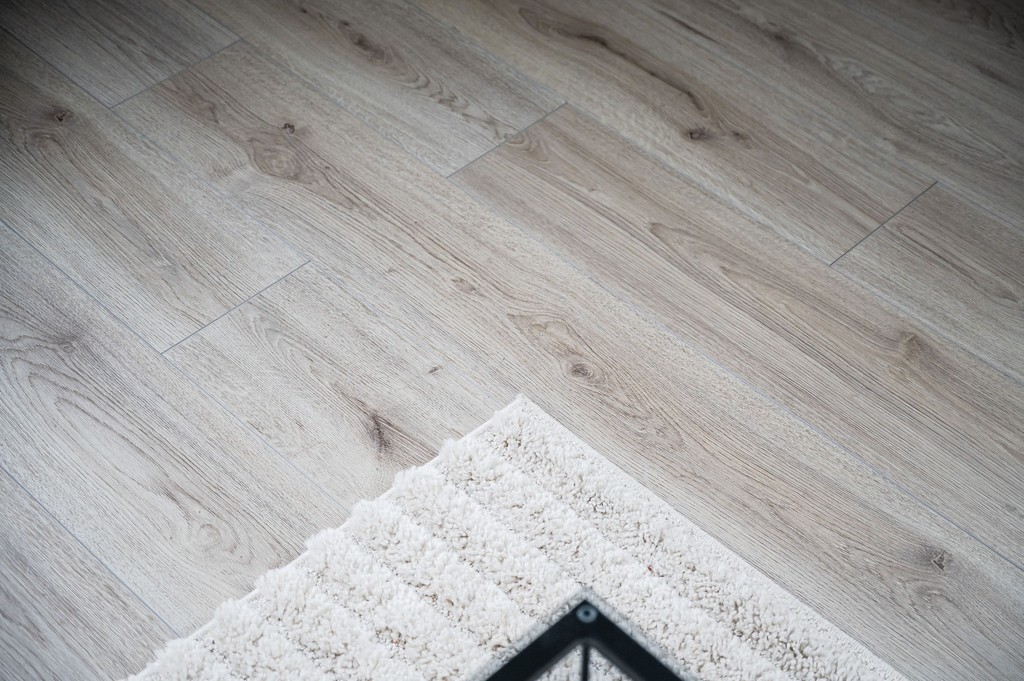 Rymligt sovrum med laminatgolv.